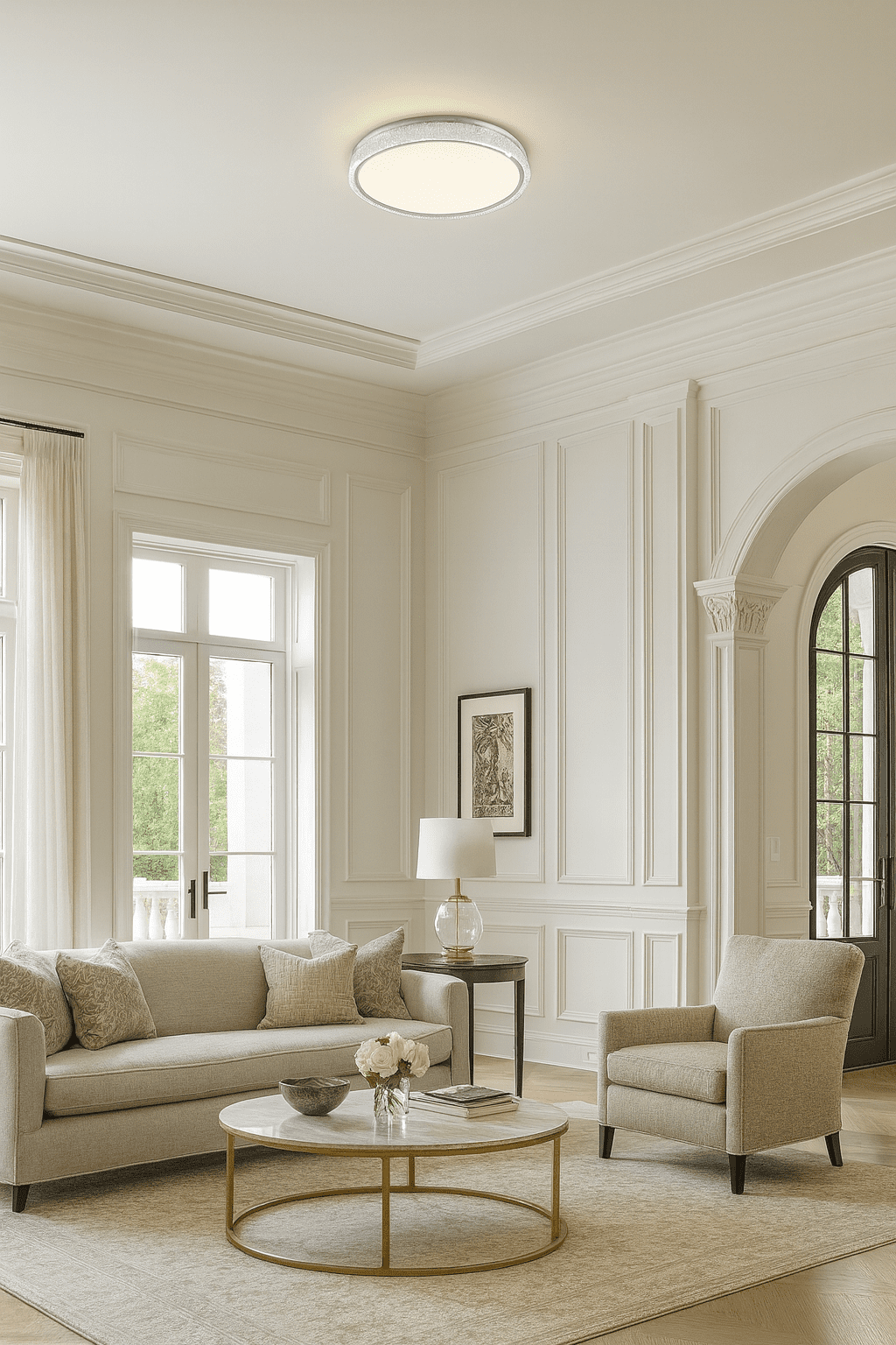 Ky ndriçues modern kombinon dizajnin minimalist me ndriçimin elegant. Forma e rrumbullakët dhe rrezja e bardhë e butë krijojnë një atmosferë të ngrohtë e harmonike në çdo hapësirë. Idealisht i përshtatshëm për dhoma ndenjeje apo ambiente të vogla, ofron ndriçim të barabartë dhe estetikë të pastër, pa detaje druri, për një pamje moderne dhe të rafinuar.
