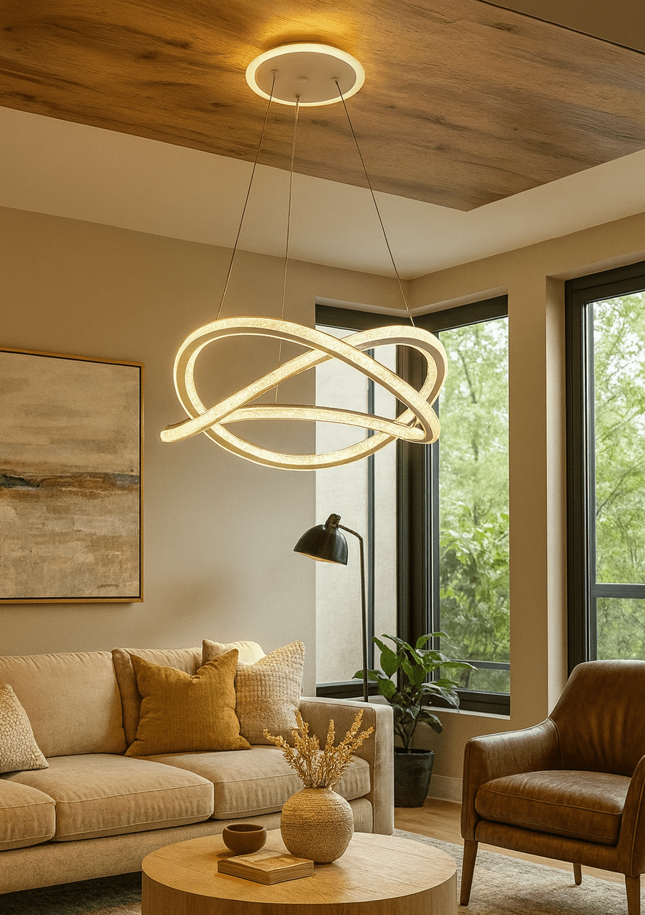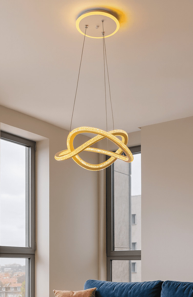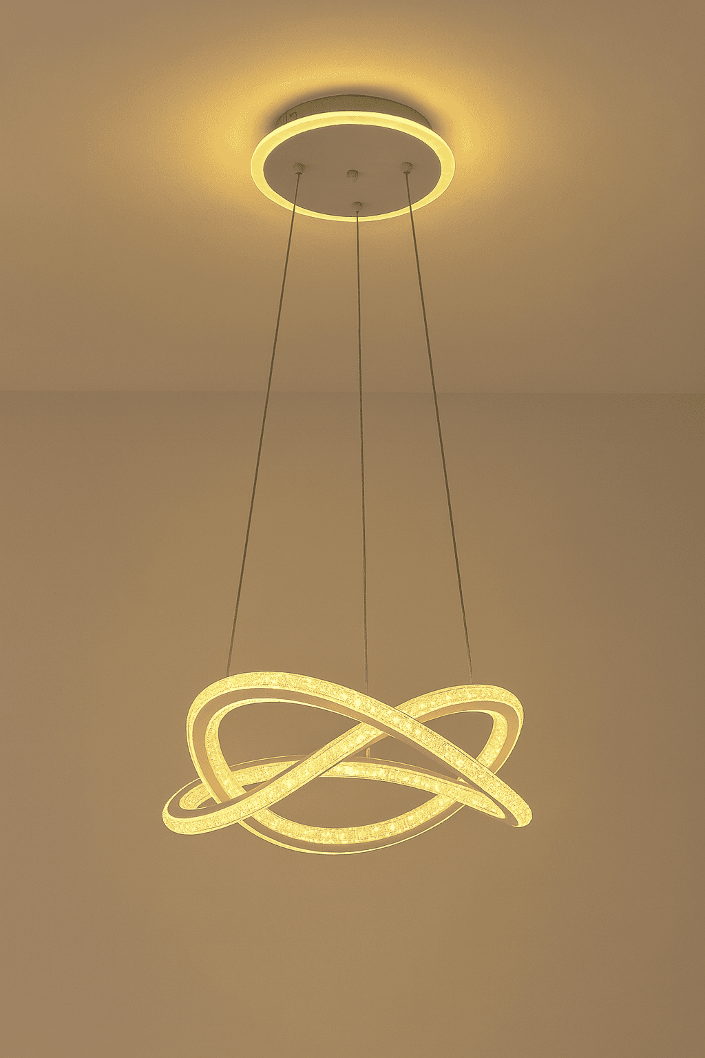 Ky ndriçues modern është një kombinim perfekt i elegancës dhe minimalizmit. Me formën e tij unike rrethore të ndërthurur dhe dritën LED të ngrohtë, ai krijon një atmosferë të butë dhe luksoze në çdo ambient.