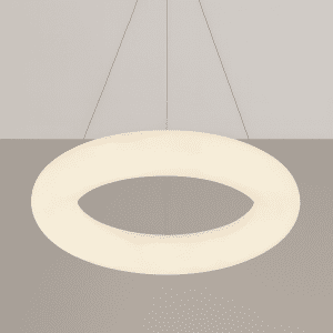 Ky ndriçues modern LED me formë unaze rrethore sjell një ndriçim të butë dhe elegant, duke krijuar një atmosferë të ngrohtë dhe relaksuese. Dizajni minimalist dhe linjat e pastra e bëjnë ideal për dhoma ndenjeje moderne ose ambiente me stil bashkëkohor. Kombinon estetikën me funksionalitetin, duke ofruar dritë të qëndrueshme dhe efikase për çdo hapësirë.