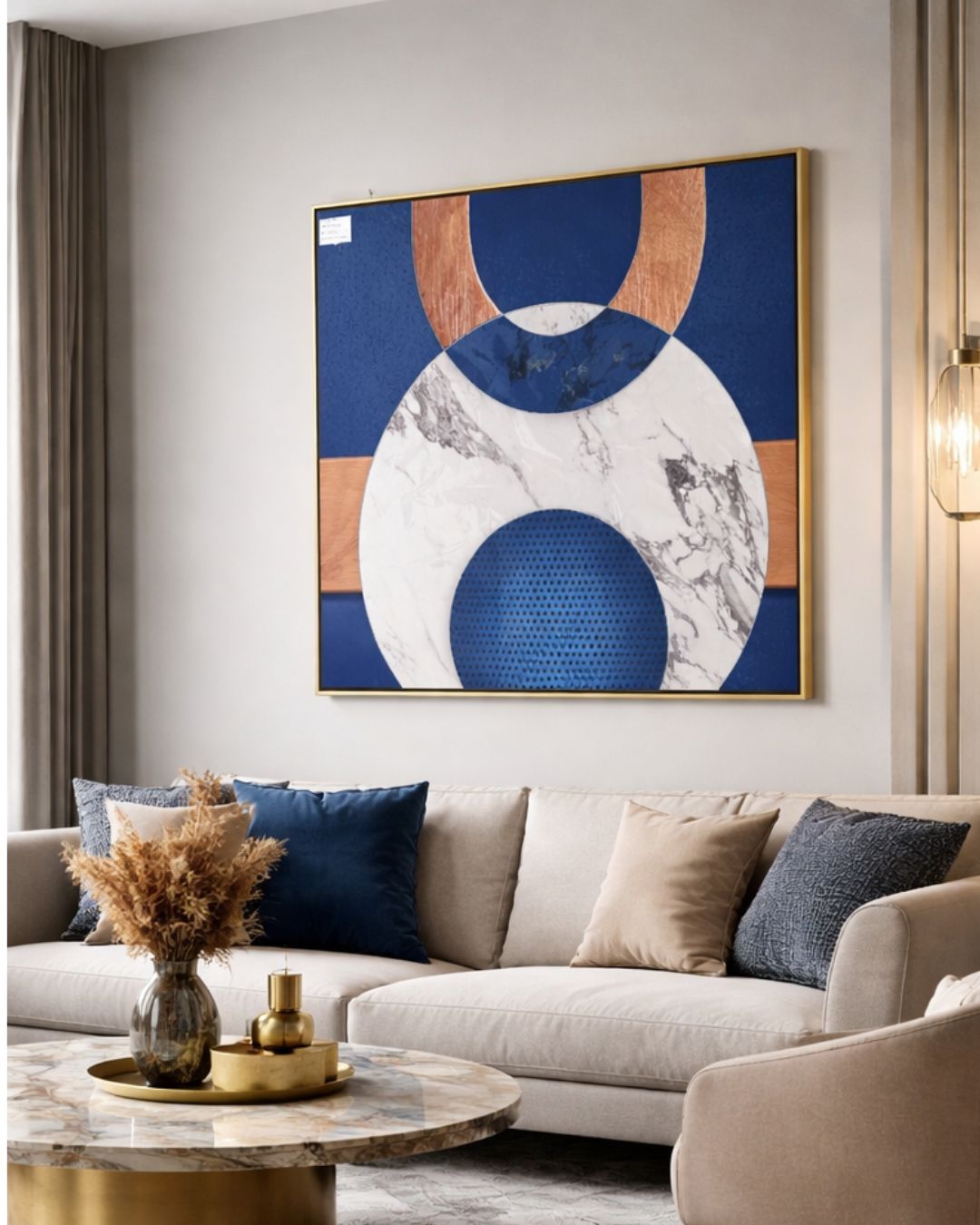 • Kombinim ngjyrash blu, të bardhë dhe detaje gold
