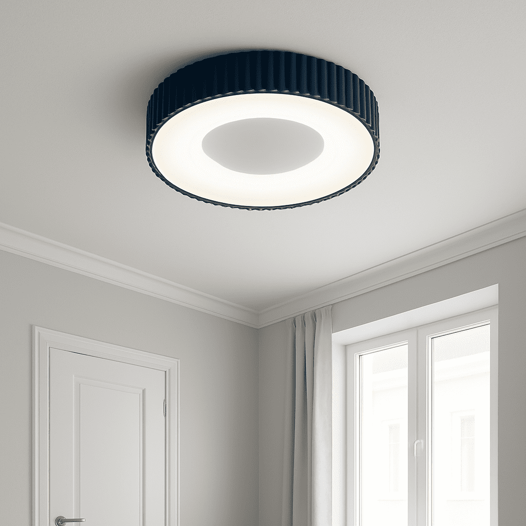 Ndriçues modern me dizajn minimalist, i vendosur në një dhomë të vogël e elegante. Drita e bardhë e butë krijon një atmosferë të qetë dhe të ngrohtë, perfekte për ambiente moderne dhe komode.